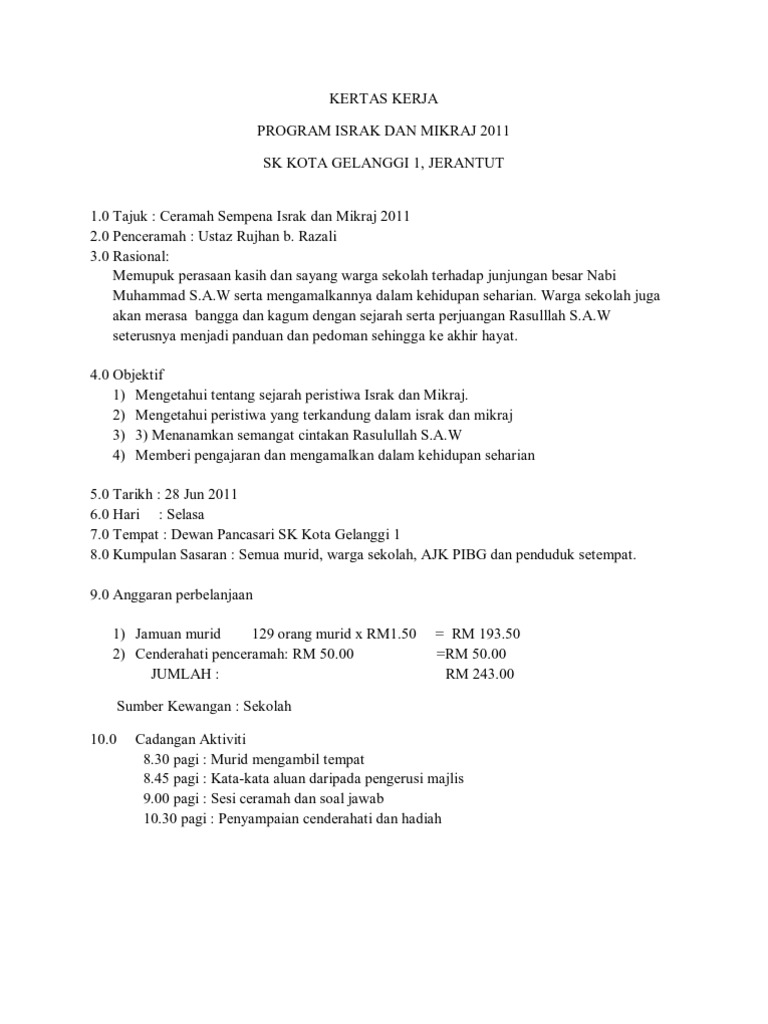 Kertas Kerja Sambutan Israk Mikraj Pdf