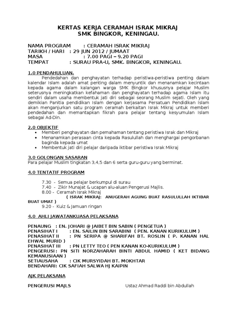 Kertas Kerja Majlis Sambutan Israk Mikraj Pdf